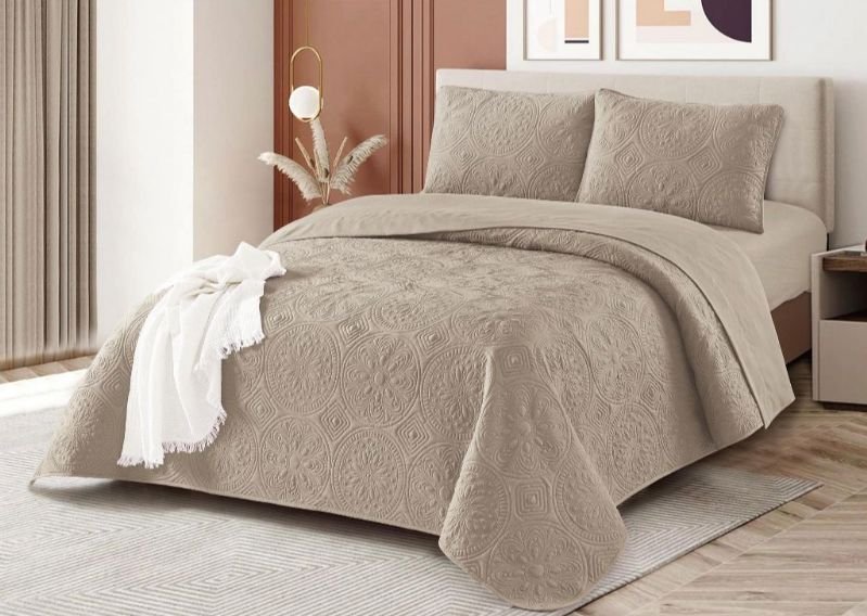 Edredón acolchado King 1200 hilos con franjas morado, lila, rosado y marrón 100% algodón 1200 Hilos 5 Piezas(King): 1 Pieza