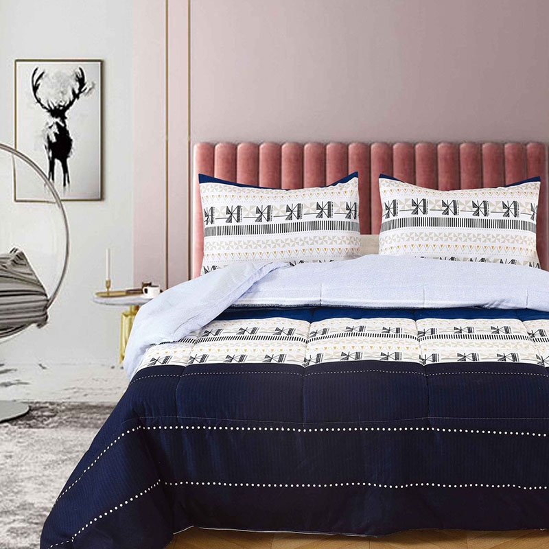 Edredón Queen estampado color azul y blanco