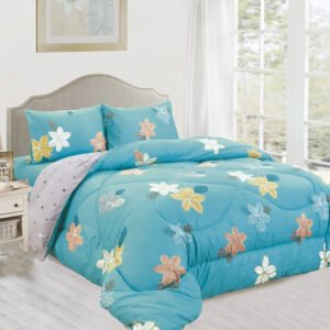 Edredón acolchado King 1200 hilos color celeste con flores amarillas,blancas y marrones 100% algodón 1200 Hilos 5 Piezas(King): 1 Pieza